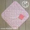 - 1 sortie de bain en coton à motifs "fleurs" doublée en tissu nid d'abeille corail brodée d'un oiseau